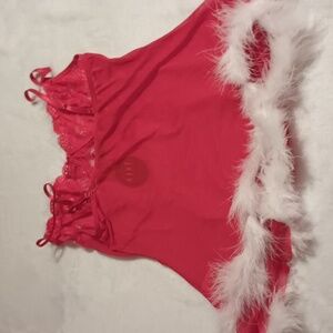 Elegant red babydoll with delicate white feather trim. Perfect for a special occasion. new with tags no original packages