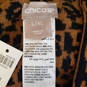 Add effortless style and cozy comfort to your wardrobe with this Chico’s Animal Print Jacquard Ruana Shawl Wrap Sweater, Size L/XL. Crafted in a soft jacquard knit with a chic animal print design, this versatile piece drapes beautifully as a shawl, wrap, or layering sweater.