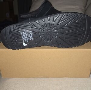 Comfortable and stylish black slip-on Ugg shoes. Perfect for casual wear.