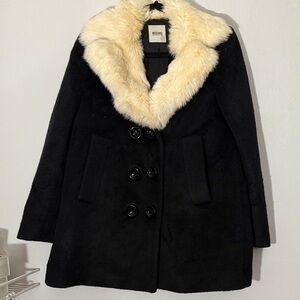 Vintage Moschino Black Wool Coat with Faux Fur Collar size 10