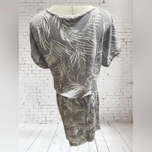 Hilary Radley Short Sleeve Palm Print Dress Gray/White | Medium (8/10) NWT