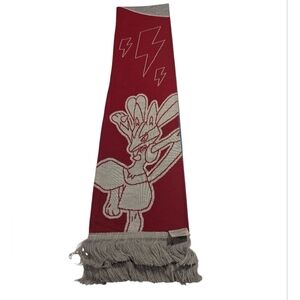 Knit scarf featuring a fierce Pikachu emblem on one side and dynamic poses of Machamp and Lucario on the other side.