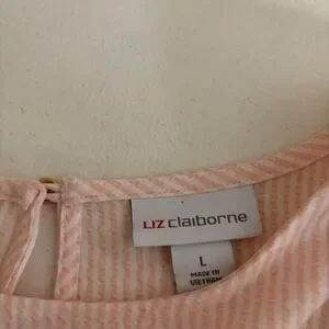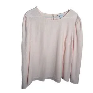 Liz Claiborne Blouse Women's Large Pink Striped Seersucker Long Sleeve Top Sheer