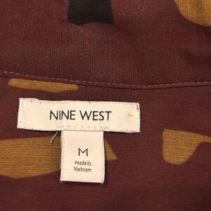 Nine West Burgundy and Tan Patterned Women's Button Down Sheet Shirt