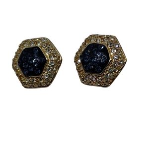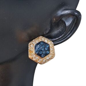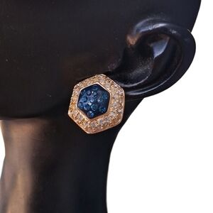 💎 Roman Co. Vintage Gold Tone Navy Blue Hexagon Stud Earrings Crystal Halo