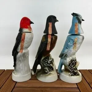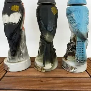Keywords: ceramic decanter, bird collectible, whiskey bottle, bourbon bottle, vintage barware, decorative bottles, ornamental decanter, novelty liquor bottle, avian decor, bar accessory, display bottle, unique gift