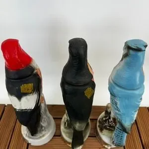 Vtg Jim Beam Set of 3 Ceramic Bird Decanter Bottles Bourbon Whiskey Collectible