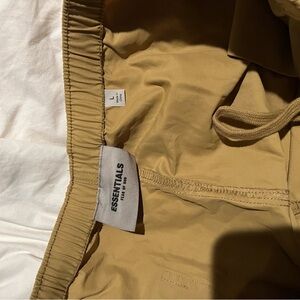 First picture was taken with flash - true essential logo is in other pics —- Comfortable khaki shorts with Essentials branding. Perfect for everyday wear.