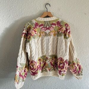 Handknitted VIntage Express Floral Cream Cardigan Sweater