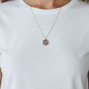 Elegant Gold Hexagon jade marble Pendant Necklace