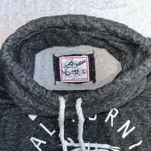 Stay cozy and stylish in this On Fire California Graphic Cowl Neck Sweater. Featuring a unique cowl neck design, this sweater boasts a California graphic with a bear and surfboard, accented by white stripes on the sleeves for a sporty touch. Made for comfort, it's perfect for casual outings or relaxing at home. Excellent pre-owned condition, with no signs of wear.