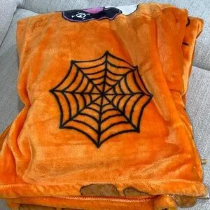 Celebrate Halloween with this vibrant Hello Kitty blanket. Features festive orange and purple design with a playful pumpkin motif.