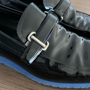 Ron Tomson Black Patent Leather Loafers Blue Soles Size 40
