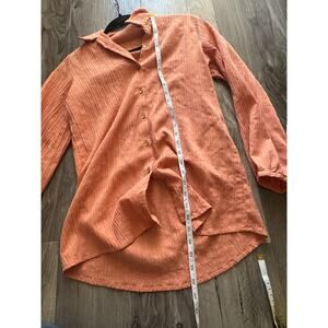 Alternate title: Khaadi women’s small textured two piece set, orange lounge set with elastic pants and button top.