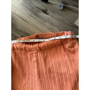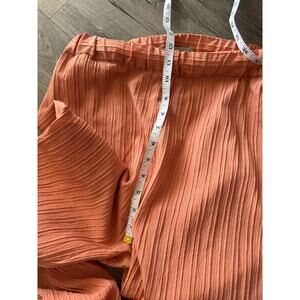 Khaadi Crinkle Textured 2-Piece Set Balloon Sleeve Top & Wide Leg Pants Women’s Small Orange