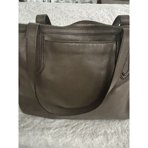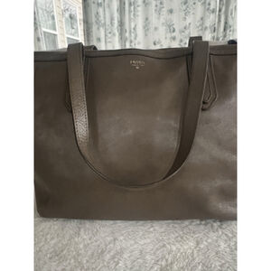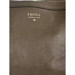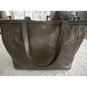 Fossil Taupe Leather Large Tote Bag Zip Top Shoulder Work Laptop Purse