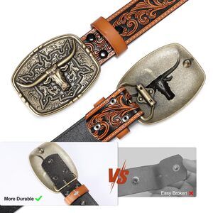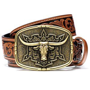 Western Cowboy Belts For Men Women, Mens Western Belt Bull Buckle Country😋