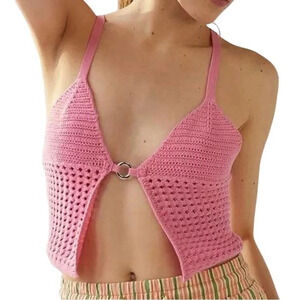 Urban Outfitters Women Open Front Crochet Cropped Top Sweater Pink Rose Size XS
