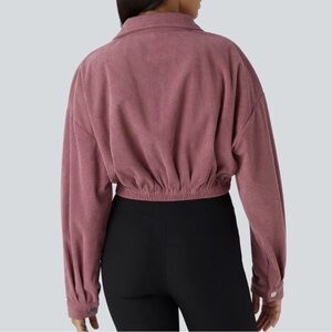 New! Halara Pocket Cropped Corduroy Casual Jacket, Pink Deco Rose, Cargo Pockets