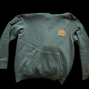 Green hoodie with Vans Pizza Logo. Ideal for everyday wear. Size is Big Kids size Small, fits close to an adult size Small.