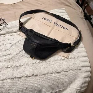 Black leather waist bag. Features gold accents. Perfect for any occasion.used a couple of times this is not real just real leather