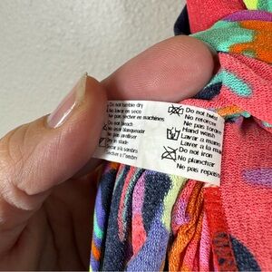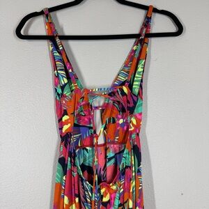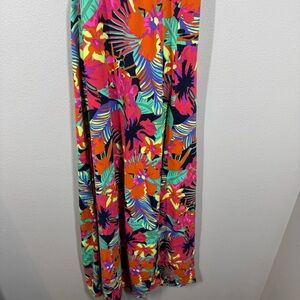 Maaji Flowering Crystal Maxi Dress Pink Bright Tropical Hibiscus Print, Lace Up Back, Tassels With Beaded Details, Vacation, In Great Preowned Condition. Women’s Size Small