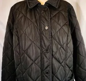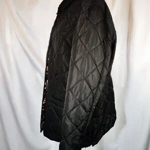 Isaac Mizrahi Puffer Jacket, Women Black Quilted, Leopard Lining, ZipUp, Pckts,M
