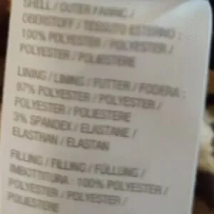 Material: polyester shell and insulation, 97% polyester lining with 3% spandex - satin like