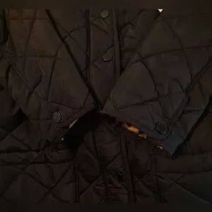 Style and color: Puffer Jacket, Women Black Quilted, Leopard Lining, ZipUp, Pockets, collar