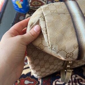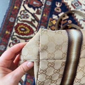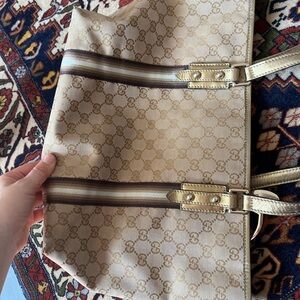 GUCCI GG Canvas Sherry Line Tote Bag Beige Black 139260, great condition, wear to bottom corners of bag. Well cared for!