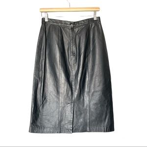 Vintage Dana Brook 100% Leather Black Midi Skirt Knee Length