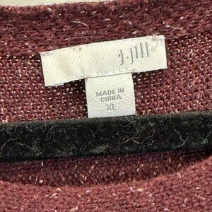 J. Jill women’s speckled burgundy sweater, size XL, in excellent used condition. Made in China, this pullover features a soft and cozy blend of 50% cotton, 33% acrylic, 9% silk, and 8% rayon, giving it both warmth and subtle texture. It has a relaxed fit, long sleeves, and a classic crew neckline. Approximate measurements: 23.5 in. armpit to armpit; 26.25 in. length. Please ask all questions prior to purchase.