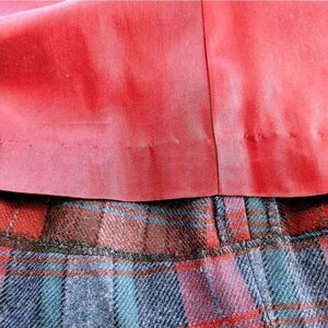This is an absolutely lovely vintage gem from TWCC. Made with a sturdy blue, red, purple and charcoal plaid pattern. Made from 100% wool and fully lined with a smooth satin. Pleating all the way down from the waist. This is from TWCC which is an Evan-Picone company. Includes the original ILGWU union label. This would look adorable in the fall paired with some brown heeled boots or dressed down with some chunky white sneakers. Button closure with a hidden zipper. A line style for that perfect hourglass silhouette. The best part? POCKETS. One has been converted for the waist alteration but the other is fully functional. This is a vintage size 6 but it has been skillfully altered to increase the waist. Based on the measurements, I would estimate that it is closest to a modern size 8/10. Please see measurements for best idea of fit.