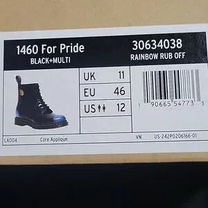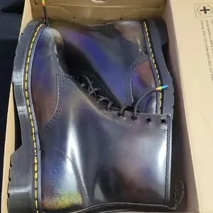 Mens size 12 US. Bold and stylish Dr. Martens boots. Iridescent finish with a multicolor sheen. Durable and eye-catching.
