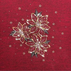Catherines Beaded Sequin Poinsettias 3/4 Sleeve Holiday Top