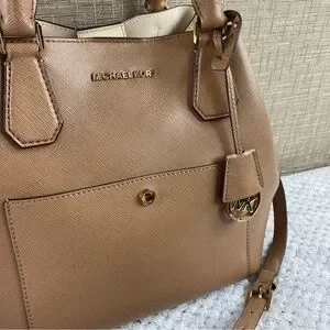 Michael Kors Greenwich Large Saffiano Leather Grab Bag Satchel Crossbody Tan