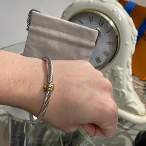 Cable Flex Station Bracelet in Sterling Silver with 14K Yellow Gold, 4mm