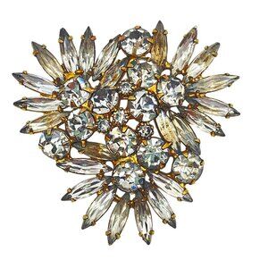 Boutique limited run Alex & Ani brooch. Sparkling floral brooch with clear crystals in a gold-tone setting. Adds elegance to outfits, suitable for formal or casual attire.