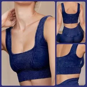 ☀️(A371) NEW Free People Movement Square Neck Bra. Washed Navy. Size: XS/S