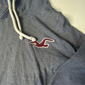 Charcoal hoodie with drawstring. Features Hollister logo. Perfect for everyday comfort.