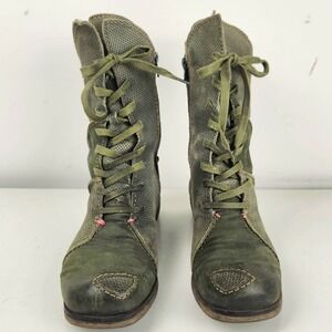 Rovers Womens Boots Green Leather Lace Up Zip Ankle Mid Calf Casual Stylish