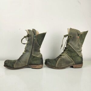 Earthy elegance radiates from these unique Rovers boots, beckoning you to embrace your individuality! A symphony of textures and tones come together in a captivating green palette. The contrasting panels, intricate stitching, and delicate perforations lend depth and character to the silhouette. A convenient side zipper offers ease of wear, while the lace-up front allows for a customized fit. Designed for comfort and style, these boots will carry you through any adventure with effortless grace. Perfect for a weekend getaway, a casual stroll through the park, or adding a touch of bohemian flair to your everyday ensemble.