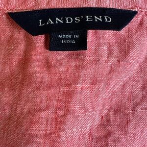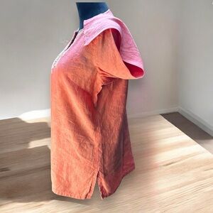 Lands’ End S Coral Linen Tunic Top Boho Embroidered Henley