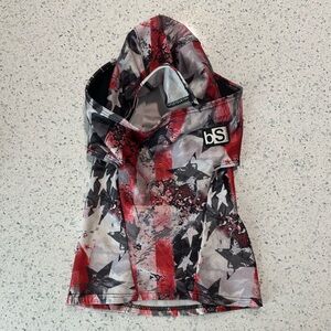 Blackstrap Star Print Balaclava in Red/Gray/White. Fun star pattern throughout. Great preowned condition, no stains or flaws to note. Looks like it’s been worn but not worn out and still fits great when I try it on. Made in the USA.