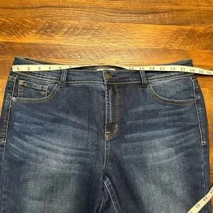Medium wash, distressed jeans. Ankle length with folded cuffs - inseam 26.5”