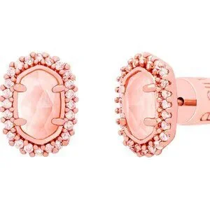 Alicia Bonnie Halo Oval Stud Earrings Rose Gold Crystal Rose Quartz Sparkly
