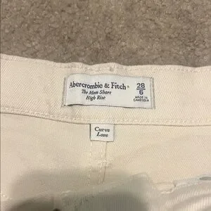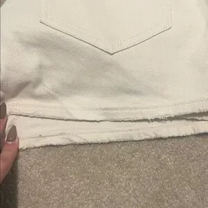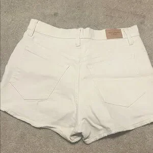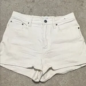 Chic high waist shorts. Soft cream color. Perfect for casual wear. Hem has distress look to it, not frayed.