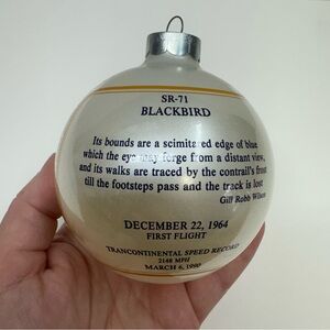SR-71 Blackbird Jet Glass Ball Christmas Ornament 1990 Military Plain Aviation Aircraft