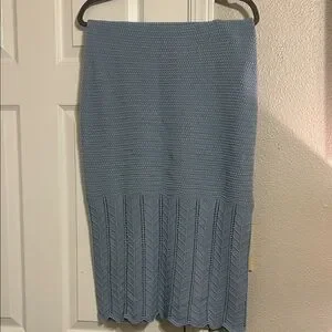Chic light blue pencil skirt. Features a textured knit design. Perfect for versatile styling.
