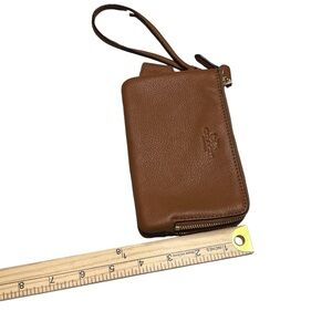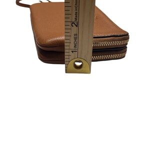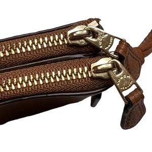 Coach F66505 Pebble Leather Double Corner Zip Wristlet, Color Saddle. Excellent